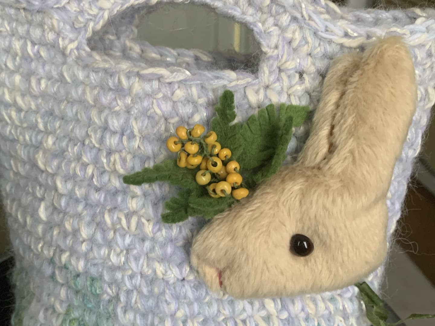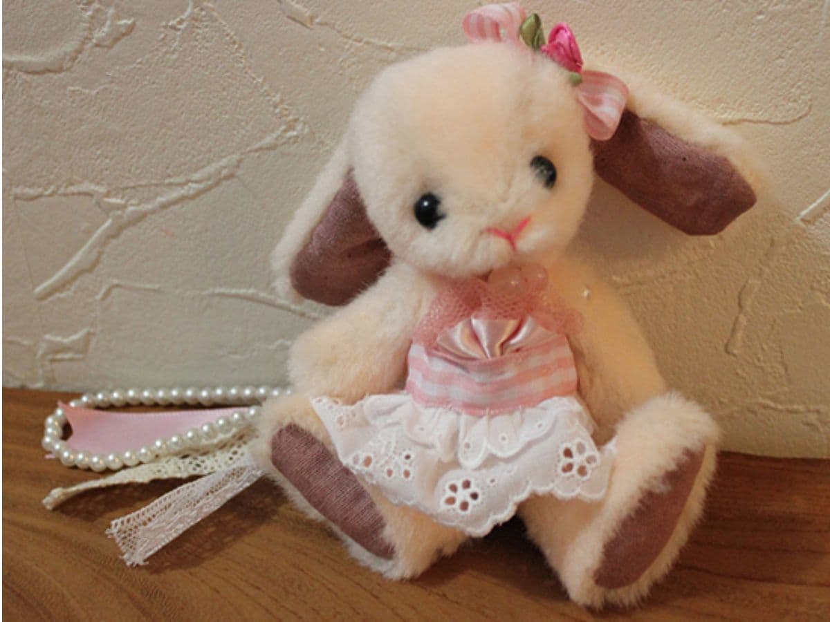 うさちゃんブローチは種類や色など、オーダーすることができます。お花を添えて。